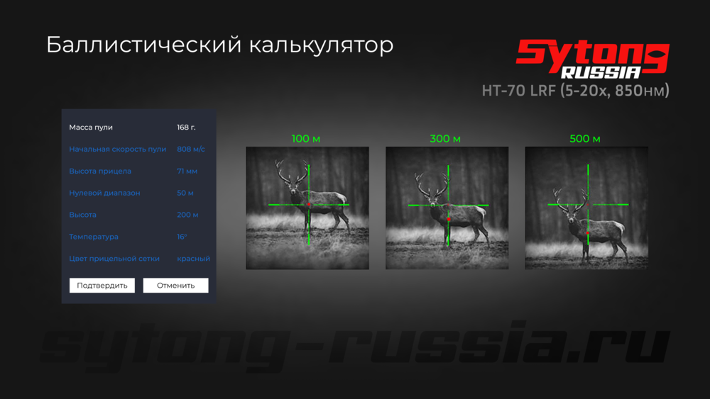 Модель HT-70LRF выделяется среди других прицелов Sytong наличием встроенного лазерного дальномера, что позволяет точно определять расстояние до цели. Прицел совместим с большинством нарезного и гладкоствольного оружия, легко устанавливается на стандартные планки Picatinny или Weaver.