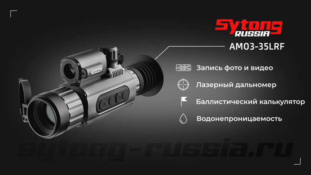 Sytong AM03-35 LRF — тепловизионный прицел идеально подходит для охоты на крупных зверей, с дальностью обнаружения до 800 м. Матрица 384x288 px и объектив 35 мм, гарантируют плавное и четкое изображение. Совместим с широким спектром оружейных систем, включая популярные модели охотничьих и тактических винтовок.