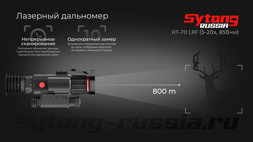 Модель HT-70LRF выделяется среди других прицелов Sytong наличием встроенного лазерного дальномера, что позволяет точно определять расстояние до цели. Прицел совместим с большинством нарезного и гладкоствольного оружия, легко устанавливается на стандартные планки Picatinny или Weaver.