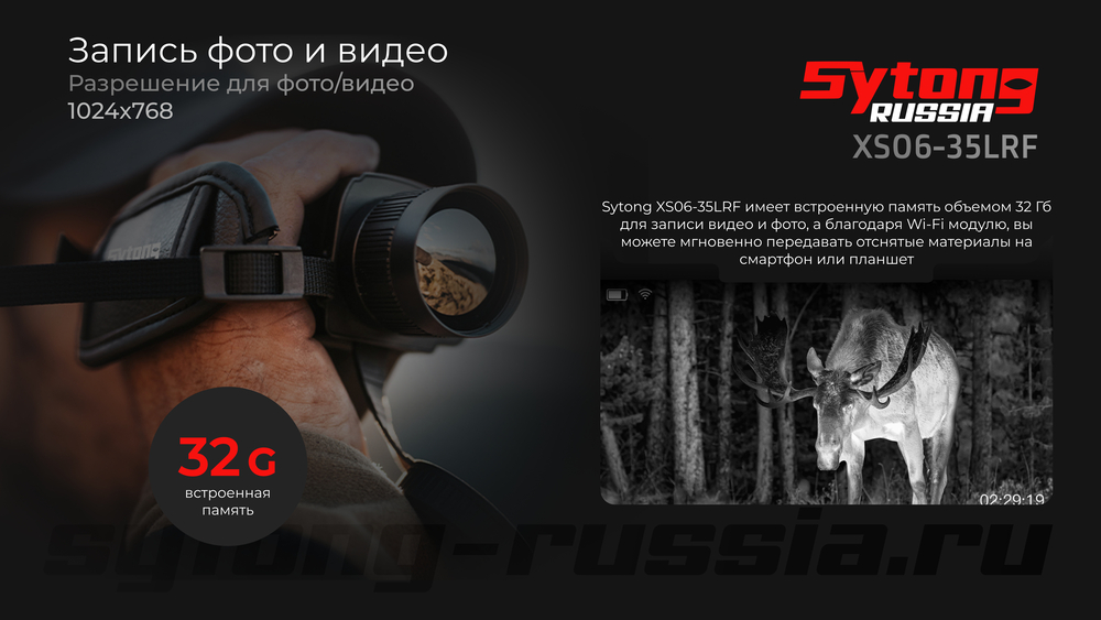 Монокуляр поддерживает карту памяти до 32 ГБ для записи фото и видео с разрешением 1024x768. Благодаря Wi-Fi модулю, вы можете мгновенно передавать отснятые материалы на смартфон или планшет.